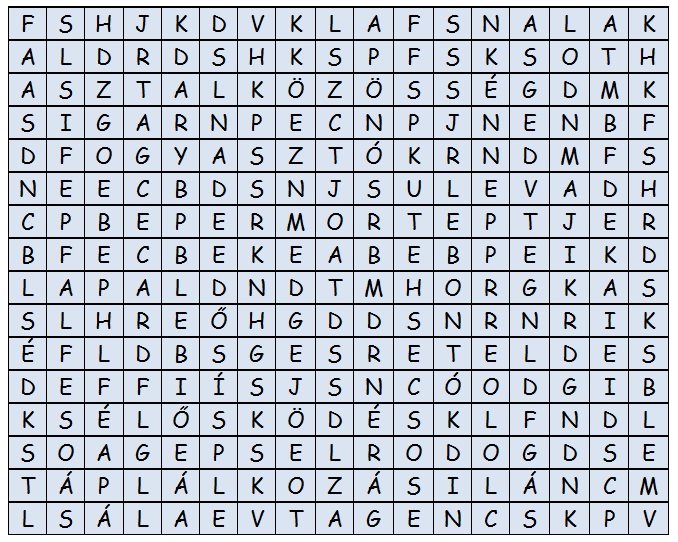 meg a betűhalmazban az elrejtett öt fogalmat!